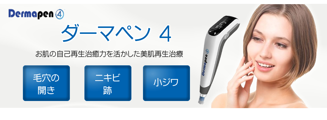 お肌の自己再生治癒力を活かした美肌再生治療。それがダーマペンです。ニキビ跡、小ジワ、毛穴の開きを改善し、ハリのある若々しいお肌へ。